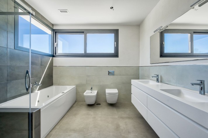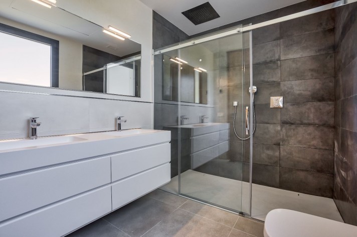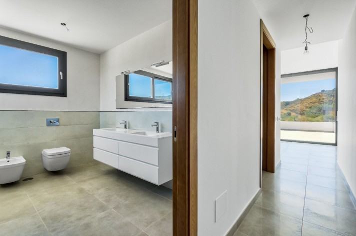 Another bathroom is located next to the other 2 bedrooms. All bedrooms have large windows with magnificent views. Round out these exquisite villa extras such as: air conditioning, alarm, heated floor in bathrooms and underfloor heating throughout the villa, automatic sprinkler irrigation, fitted wardrobes in all bedrooms, pre-installation of solar panels, lighted garden, as well as the swimming pool. With the purchase of this villa La Cala Golf Resort offers a Privilege card with discounts at the Hotel, bar/restaurants and for the owners and family to be a member with an annual, very special fee, of the three golf courses.