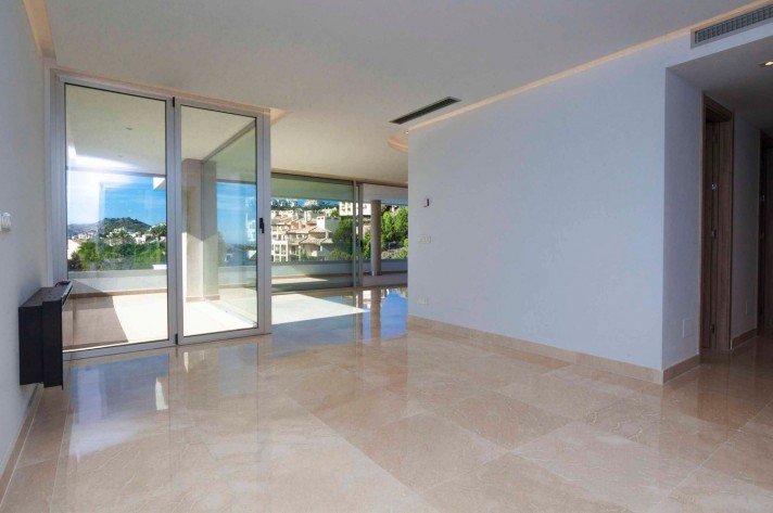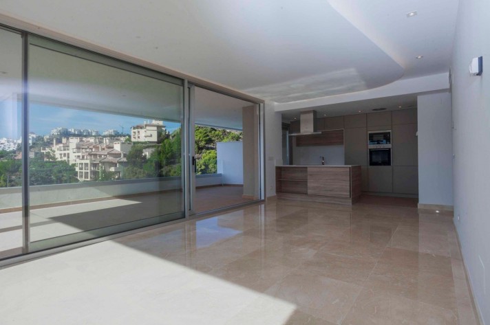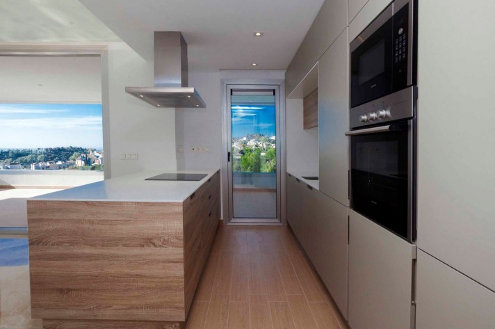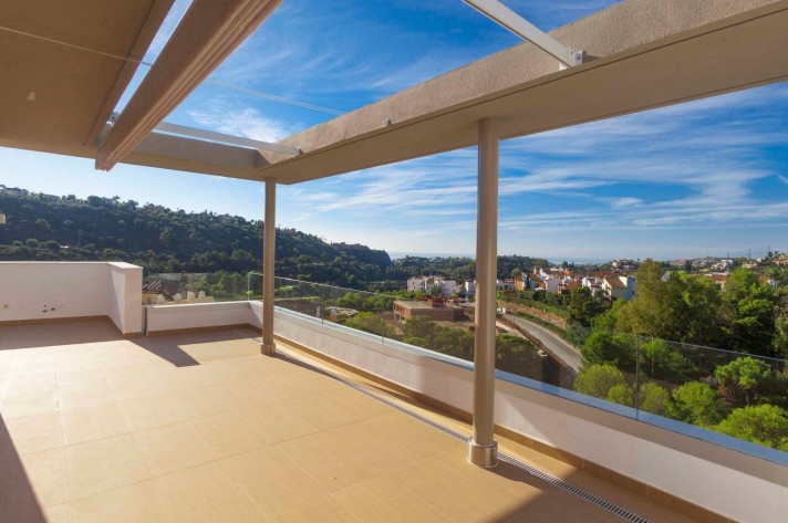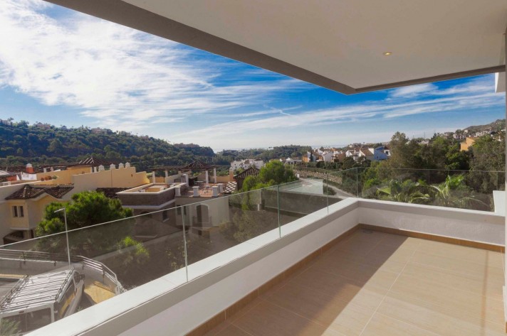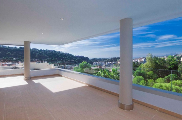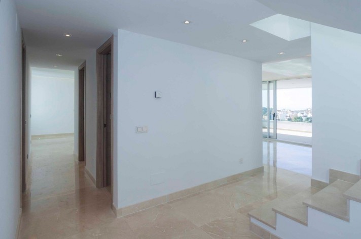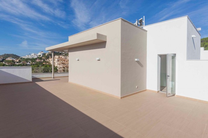 Stunning corner penthouse with an impressive wrap around terrace. The outdoor space in this property provides the perfect outdoor living set up. The apartment itself is brand new, and delivered fully equipped with high quality modern finishes. The penthouse has an abundance of natural light, and open views towards the golf and Mediterranean sea. There is a private garage space and storage room.