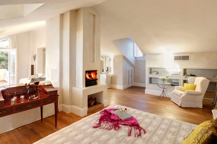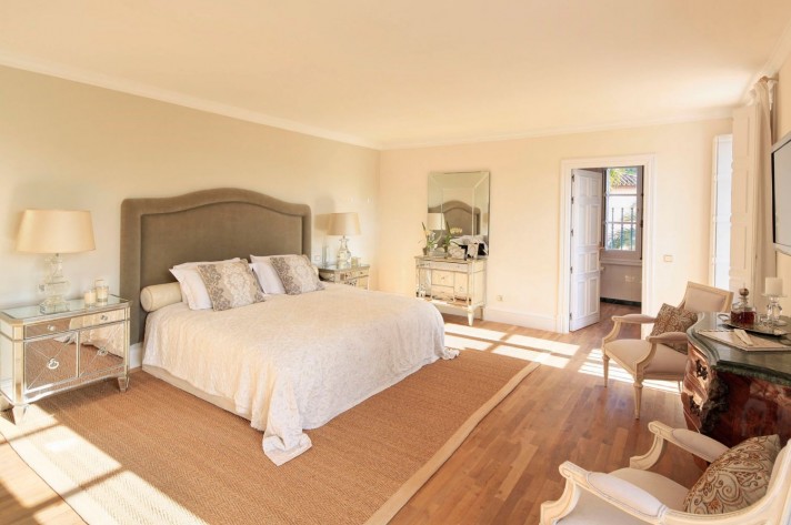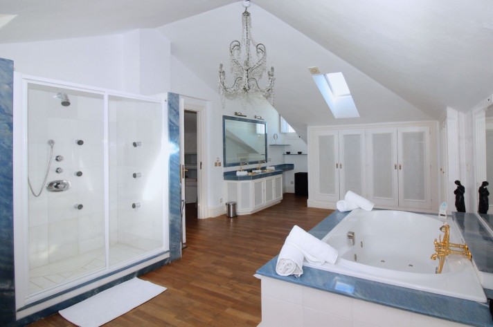 From the courtyard with plenty of space for parking cars, you enter into the full height entrance hall, which provides access to all parts of the villa. A classic staircase leads to the first floor, which holds 3 large bedrooms with bathrooms ensuite. A small staircase, or the lift brings you to the loft style master bedroom suite. Here there is a cosy living room, large terrace and bathroom with jacuzzi. On the main floor, you will find a dining area, large living room with direct access to the garden and naturally the kitchen, with space for an office or extra room. The lower level holds a full height safe, cinema and a large garage, which could be converted into a separate living area, gym, or leisure area.