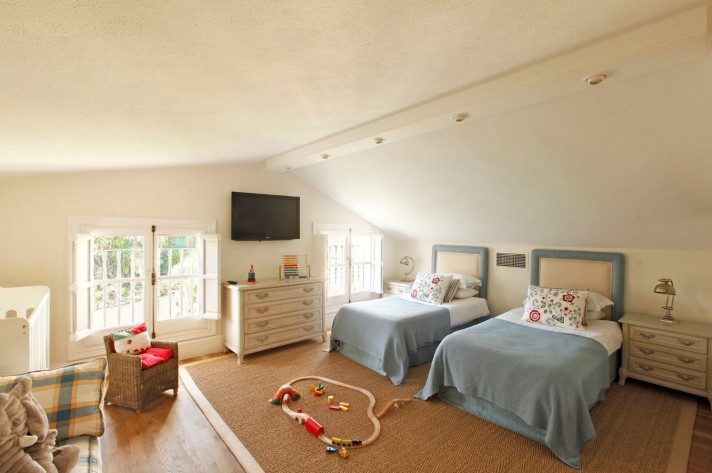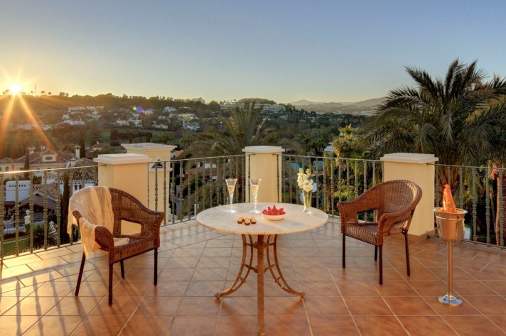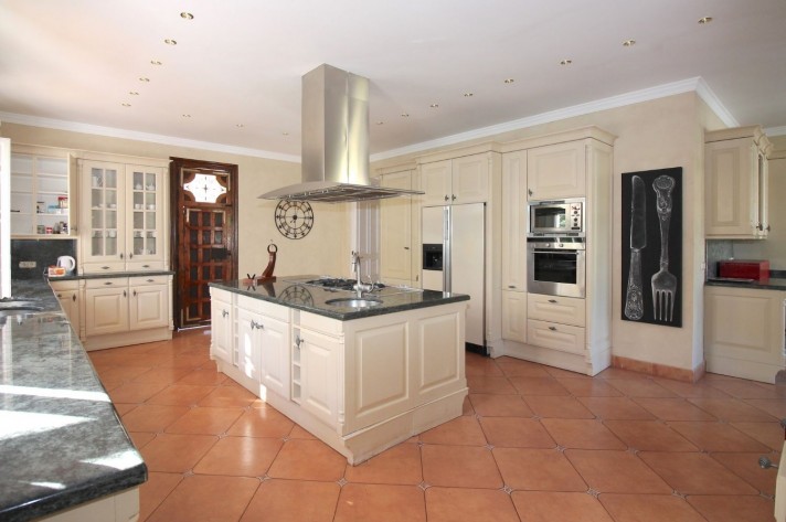 Separate to the main villa there is a guest house with 2 bedrooms, kitchen and bathrooms. In connection to the guesthouse there is a fully fitted outdoor kitchen, spa and a sauna. The garden garden stretches over several thousand square meters, and allows the residents to enjoy the panoramic views, play a game of tennis or exercise in the gym. If the temperature is to high for this kind of activities, the large pool is the natural meeting point. A professional grade outdoor cinema is installed over the pool, with a built in surround system to enjoy both music and movies with excellent sound.