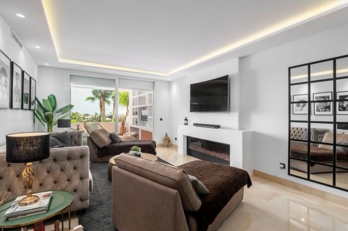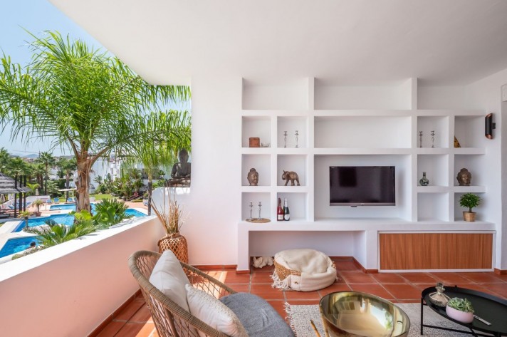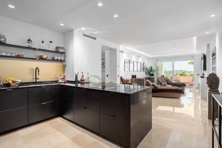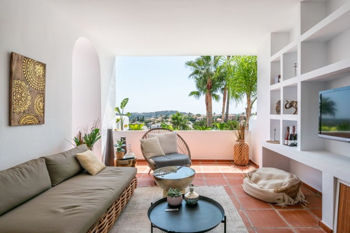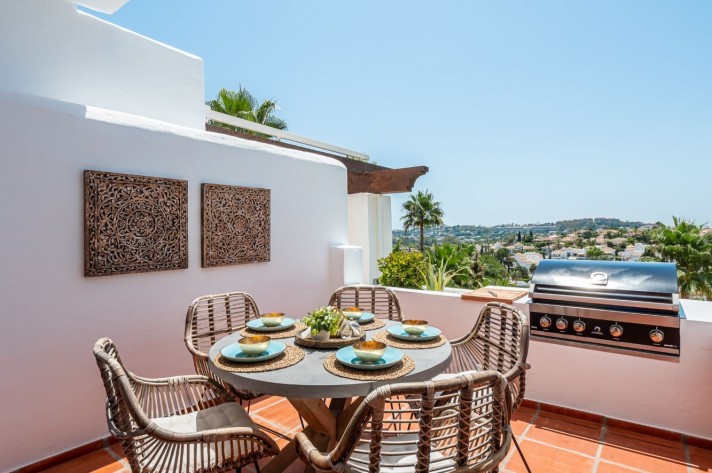 Located in a prestigous urbanization, in the hills of Nueva Andalucia. Direct access from the garage up to the renovated apartment with 3 bedrooms and 2 bathrooms, open floor plan with kitchen and living room area. From the living room area and master bedroom with direct access to the spacious terrace with lounge, dining and barbeque area, and a f… Read more…