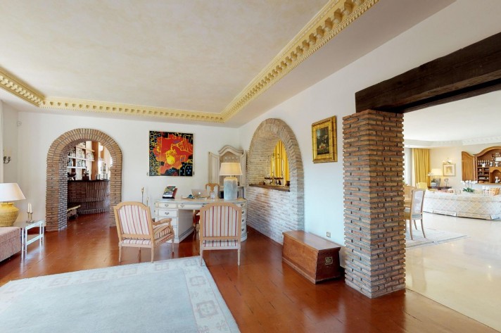 Perfect for relaxation & entertainment, the property with direct access to the beach has immaculate gardens, pond style swimming pool and spacious terraces. Wall to wall windows and doors offer views and access to the landscaped gardens with cascading water features. Highlights include wine cellar, gymnasium. underfloor heating, marble flooring, state-of-the-art security system and underground parking spaces.