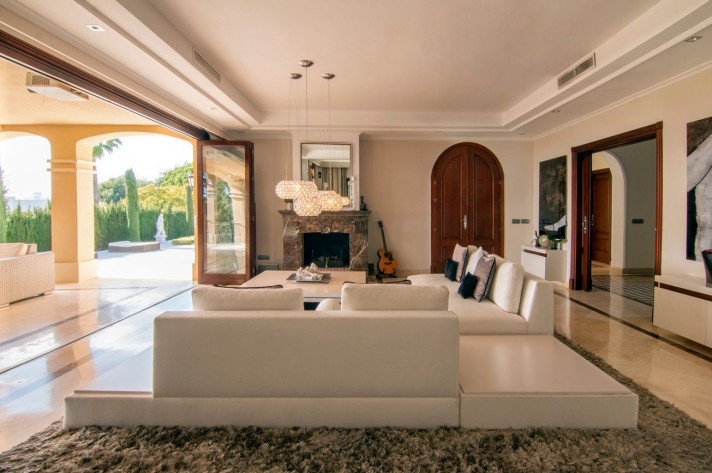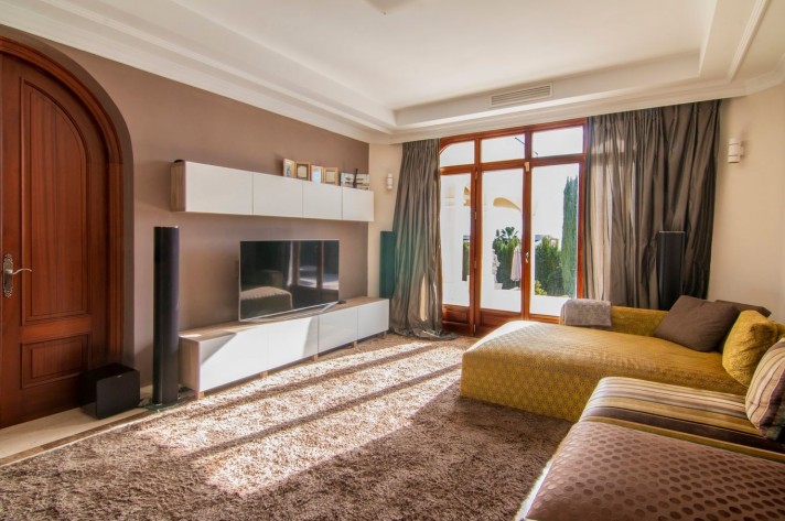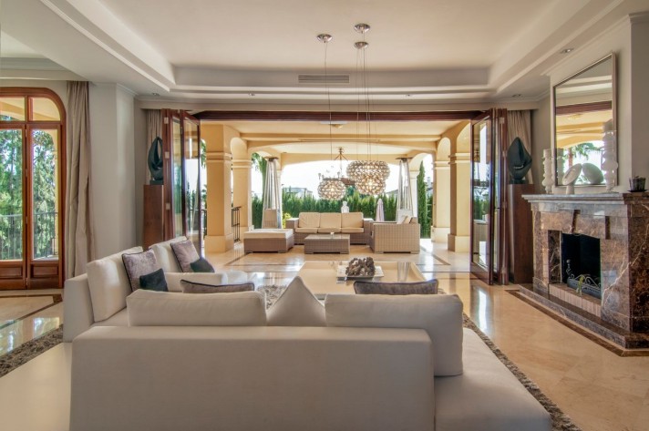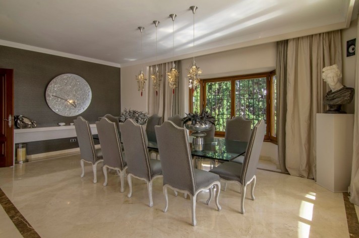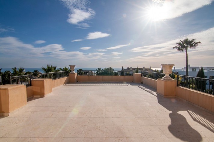 A grand mansion located in one of the most secure areas of Sierra Blanca. This villa commands stunning sea views and light filled rooms. Upon entering this large corner plot you are met with a fantastic pool and terrace perfect for entertaining on summer days. There is also an outdoor kitchen area with bar and barbecue. The house itself has had various updates and offers a classical yet neutral style for its future buyer. Upstairs are four spacious bedrooms, all en suite, and with beautiful views. On the ground floor there is a homely open living-dining area and a further two rooms that can be used as office spaces, or living area. Towards the back of the house is a spacious and inviting kitchen which leads to a pantry and out to a very private terrace - perfect to cool off in summer evenings. Downstairs is a large space that is currently divided into a large fully equipped gym, a games room, bedroom, independent kitchen and garage.