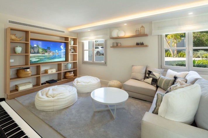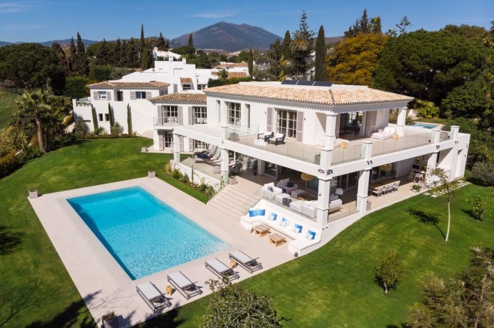 A contemporary mansion located on the front line of Aloha Golf in a gated community of luxury villas. The house features a classic exterior combined with modern top quality interior. The property consists of a main house with 5 bedrooms, including an extra large master bedroom & dressing room, and a separate 1 bedroom staff/guest house. Exceptional panoramic Golf, Sea and Mountain views.