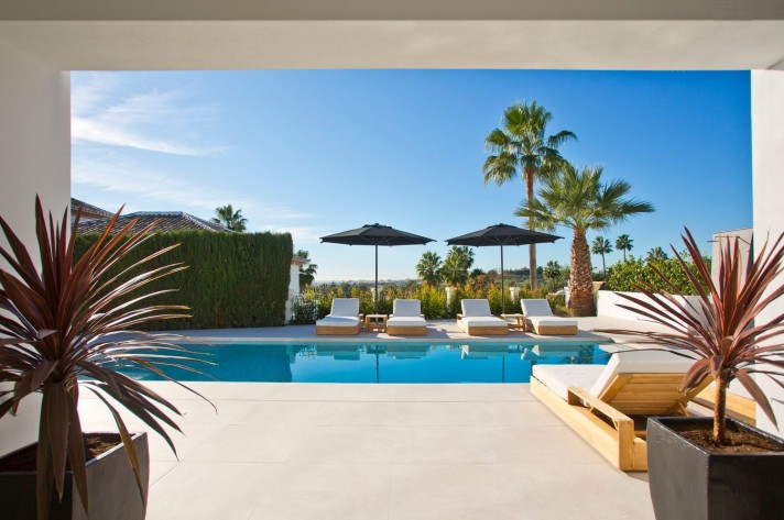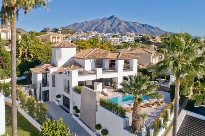 Classic and modern Andalucian villa that offers that unique ambiance upon first entrance. By combining the classic exterior architecture with contemporary interior, you will have the perfect modern and elegant home. Private and elevated location that provides panoramic views towards the golf course and sea. Redesigned to highest standard with the finest materials and