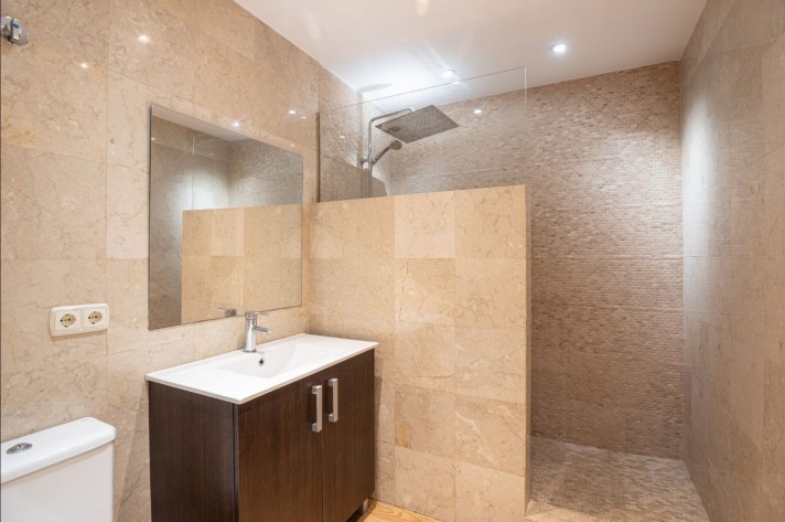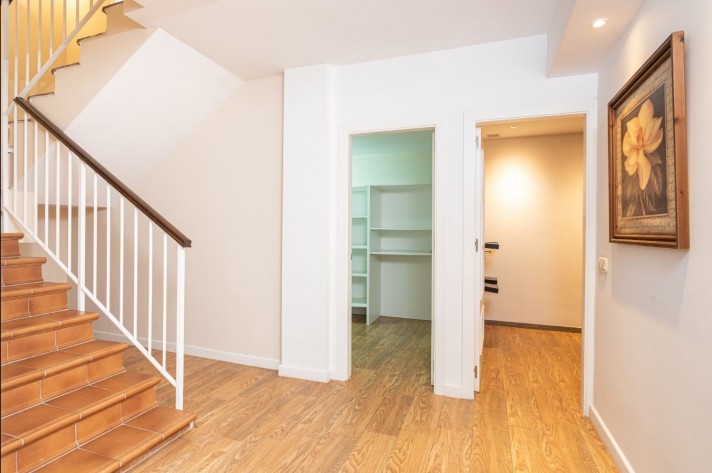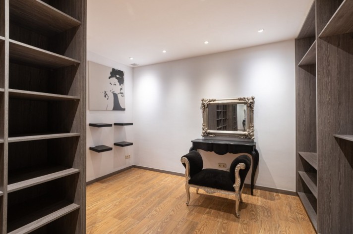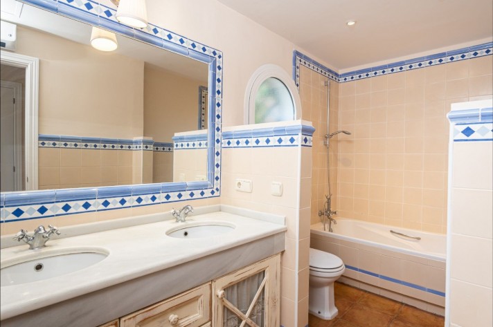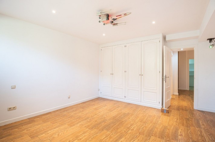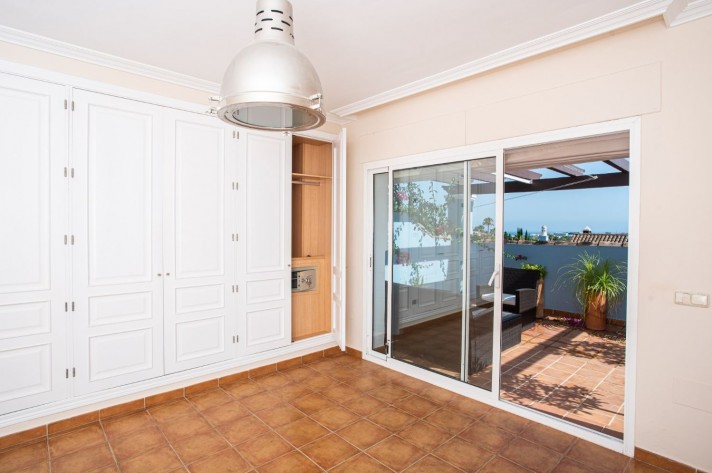 On the upper level, there is the master bedroom with en-suite bathroom boasting a private solarium with sea views. In the basement, there are two further guest bedrooms -one of which converted in to a large walk-in wardrobe- guest bathroom, storeroom and private garage for one car.
