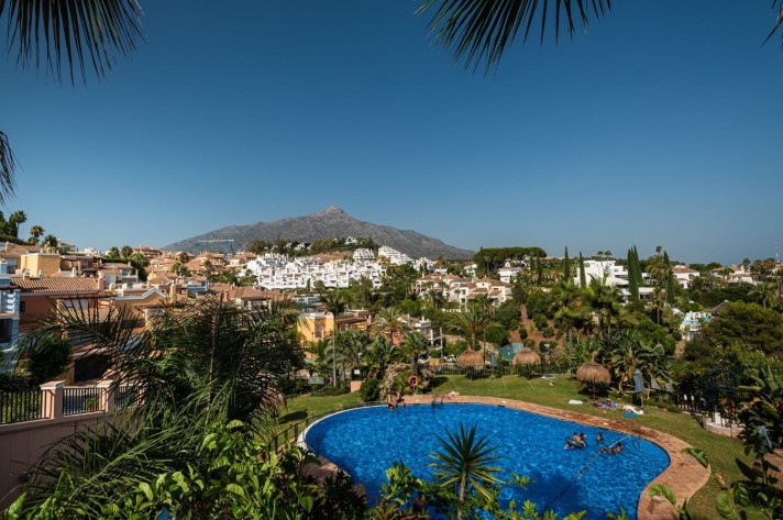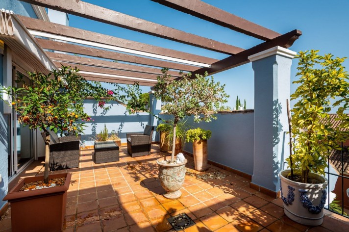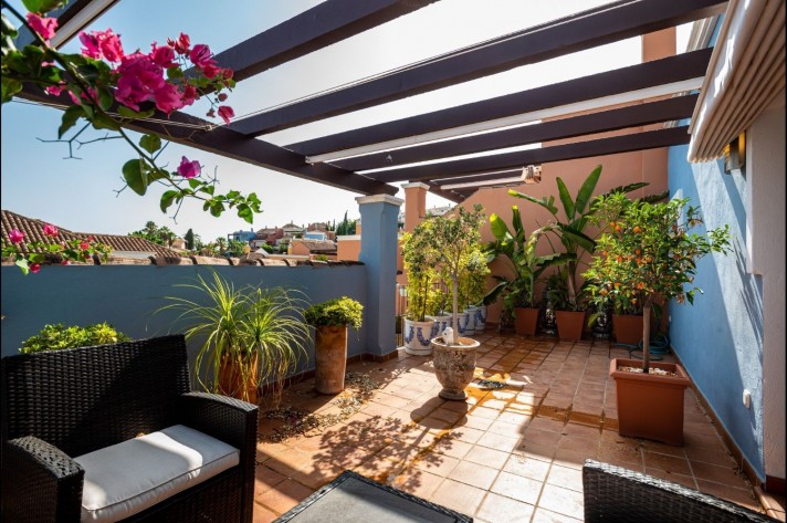 GOLF VALLEY- €2,000 m2, South facing four bedroom townhouse situated in the heart of the golf valley in Nueva Andalucia, surrounded by the international Golf courses of Las Brisas, Aloha and Los Naranjos. A wide range of amenities as supermarkets, international schools and banks can be easily reached within a short drive away.