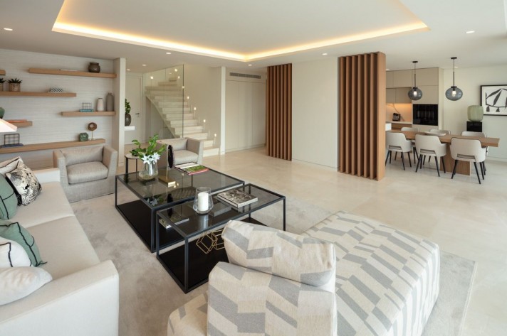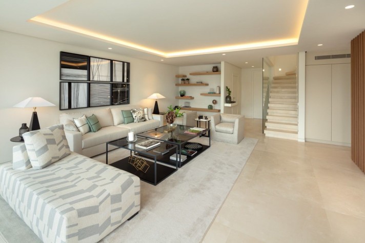 This newly renovated four-bedroom duplex penthouse in the heart of Puente Romano on Marbella’s Golden Mile is an exquisitely styled property just a few steps from the beach and moments from a wealth of 5-star amenities.