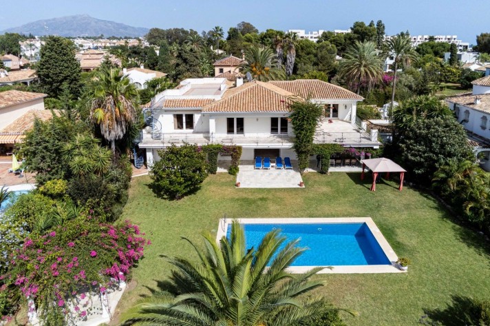 BEACHSIDE- Six bedroom villa, second line to the Meditarranean sea situated within the community of El Paraiso Barronal and just a few steps away from an exclusive sandy beach with supermarkets, schools and golf courses just a short drive away.