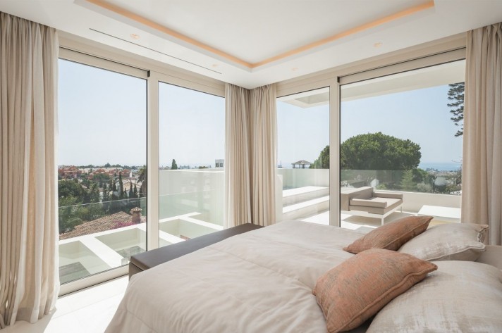 On the upper floor, en-suite master bedroom with dressing area and access to a southwest facing terrace with jacuzzi and commanding views to the Mediterranean coastline, Gibraltar, and the North of Africa, a further en-suite bedroom with walk-in wardrobe and stunning views towards La Concha mountain. The basement offers a double-height ceiling which has a self-contained guest apartment; cinema room, gymnasium with natural light, machinery room, storage and an underground garage with space for three cars.
