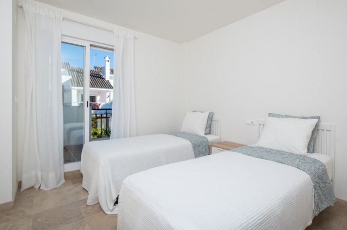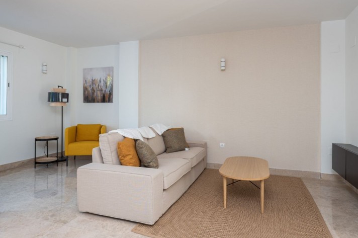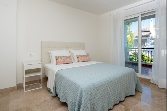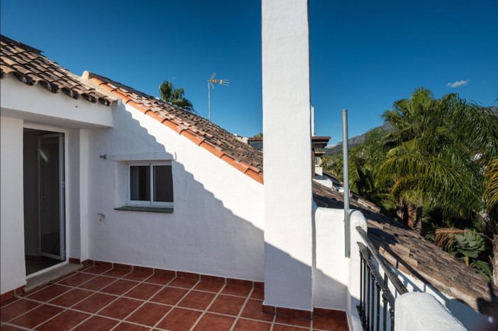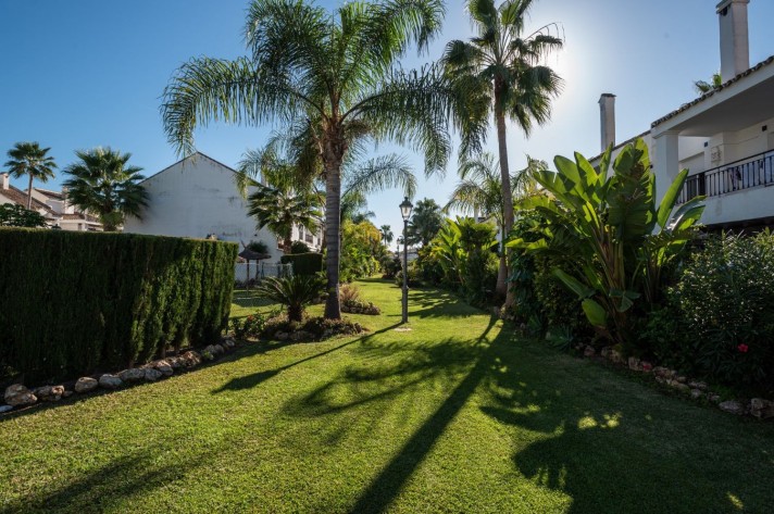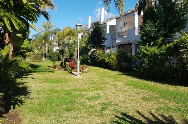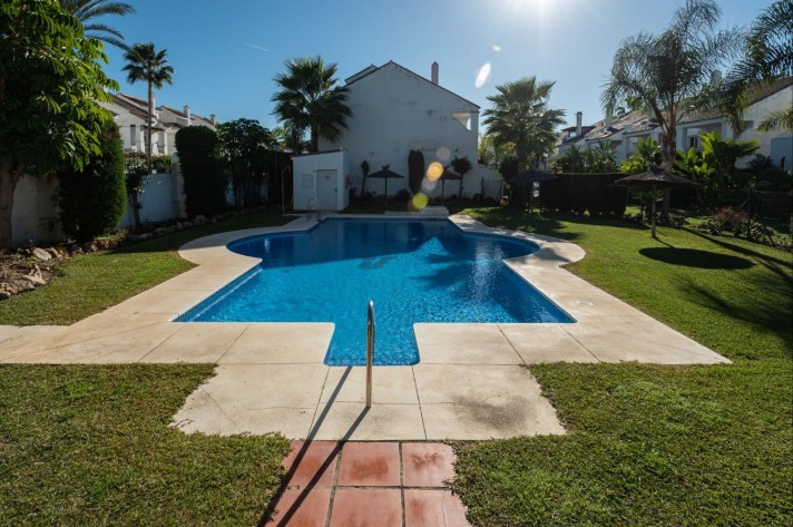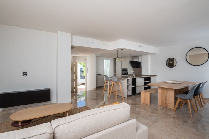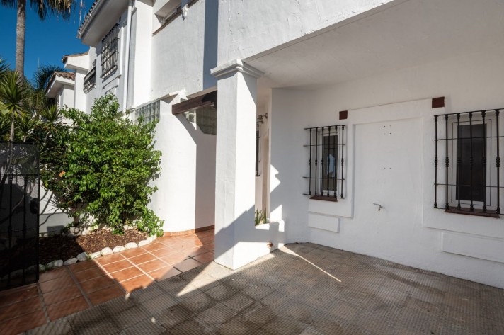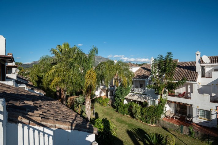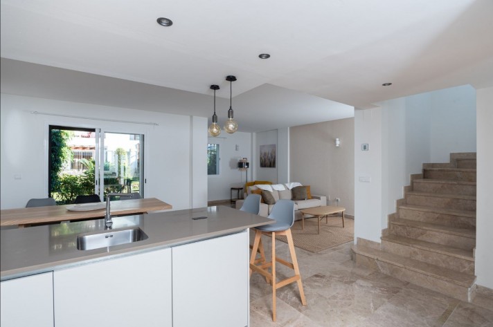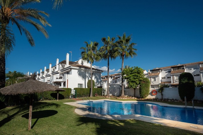 Four bedroom townhouse located in the residential area of Los Naranjos de Marbella, within walking distance to Puerto Banus and all amenities. This one of a kind townhouse has been recently renovated and consists of: Entrance hall, open plan kitchen, laundry area, living/dining area with access to the terrace enjoying a private access to the communal tropical gardens and pool.
