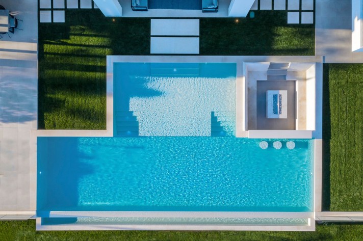 Other features include a three vehicle carport, integral four car garage, pre installation for an elevator, underfloor heating throughout the house, air/con hot and cold and feature infinity pool. Trendy chill out corner with chimney integrated in the garden.