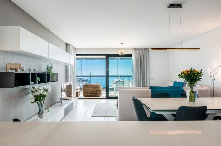 This luxury apartment offers a spacious open plan living area flooded with natural light, ample terraces with stunning sea views., parking and storage.