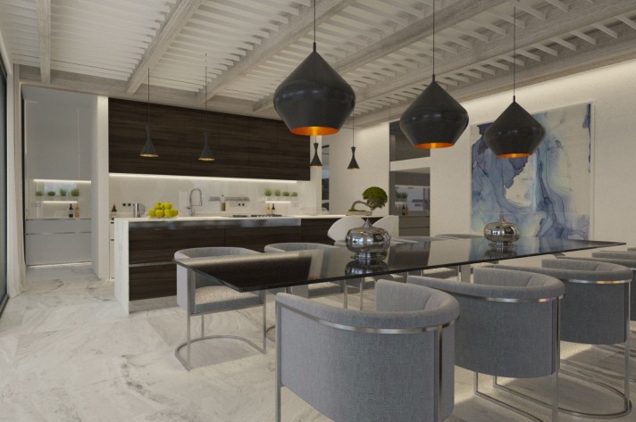 Minutes away from Puerto Banus and Marbella yet in a privileged and Secure Enclave in the hills above San Pedro. The villa will feature a light filled living space with uninterrupted mountain and sea views from the spacious and luxurious open plan entrance hall with an amazing water cascade , double sized drawing room, sitting area, dinning room and the designer kitchen.