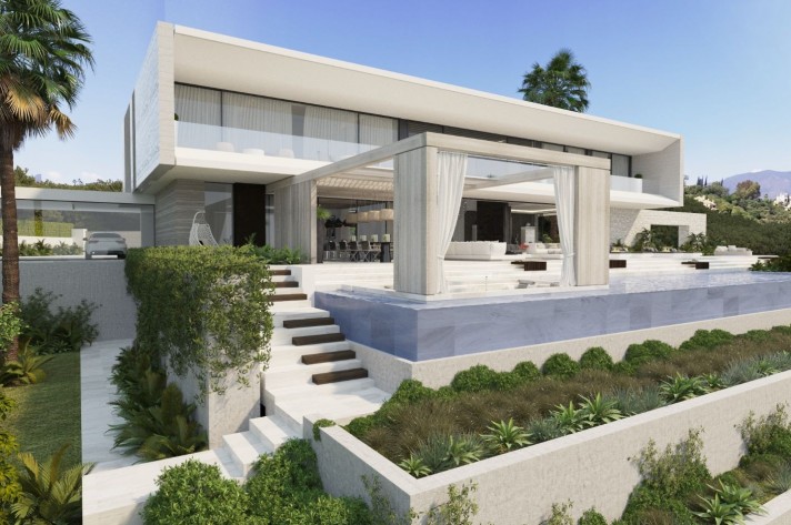 BRAND NEW ARCHITECTURAL MASTERPIECE This stunning 8 bedroom suite contemporary masterpiece is located in the exclusive El Madroñal gated residential neighborhood in a quiet location and affording spectacular mountain and sea views from both the expansive living areas and bedrooms.
