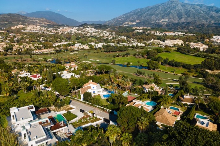Luxurious LA style home located in the heart of Nueva Andalucia, with outstanding views over the Golf Valley towards La Concha mountain. A fully loaded home, with 5 bedrooms, 6 bathrooms, TV and entertainment lounge, garage for 4 cars and an enviable infinity pool.