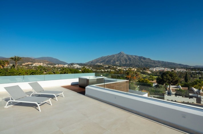 Luxurious LA style home located in the heart of Nueva Andalucia, with outstanding views over the Golf Valley towards La Concha mountain. A fully loaded home, with 5 bedrooms, 6 bathrooms, TV and entertainment lounge, garage for 4 cars and an enviable infinity pool. Finished to the highest specifications delivering exquisite design and located i… Read more…