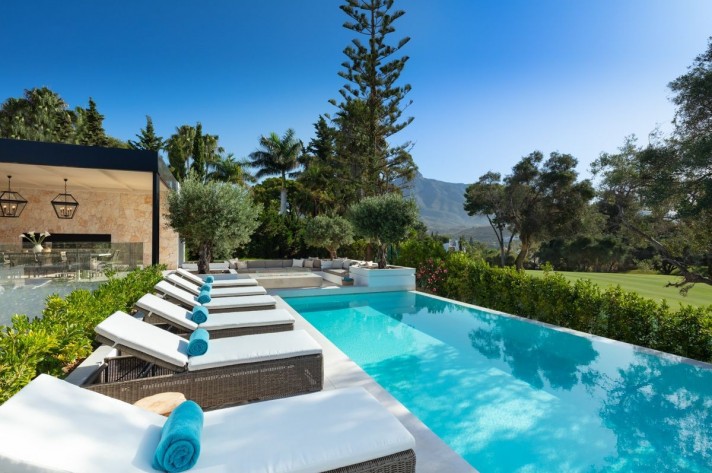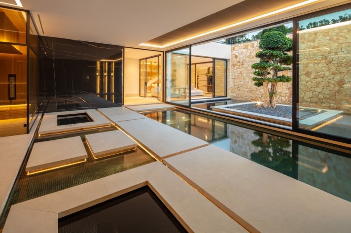 The outdoors of Villa Victoria are impressively remarkable. The spectacular garden offers you several covered and uncovered chill- out areas, with contemporary fireplaces, dining spaces, an outdoor kitchen and breathtaking views to the exclusive Aloha golf course. From the garden, you can access the state-of-the-art SPA with the most luxurious finishes.