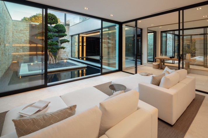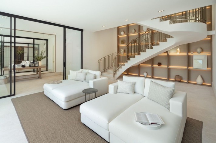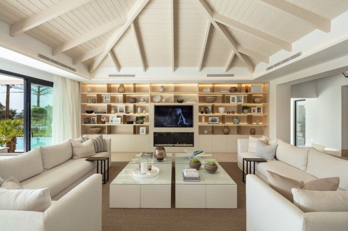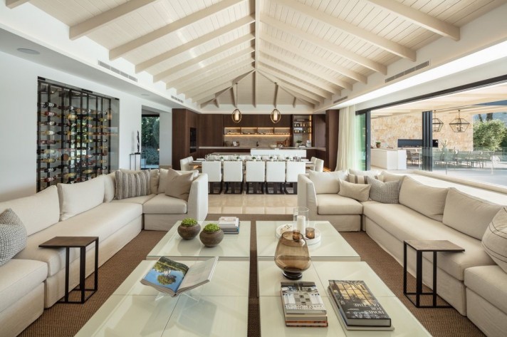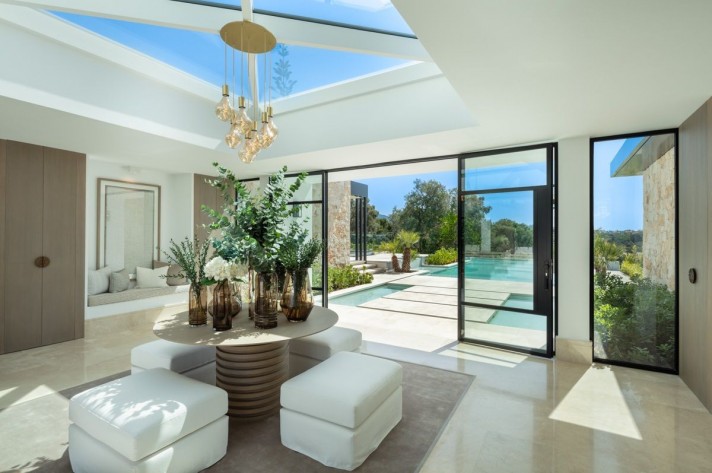 Villa Victoria has been finished and designed to ensure the greatest quality of life. The home welcomes you into an exquisite hall opening to the breathtaking manicured garden and infinity pool. The main living areas and bedrooms are built on one level and distributed into two separate wings. The villa includes a basement level exclusively designed for wellness. On the left wing we can find a grand open-plan living room, with a chic interior design.