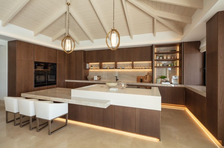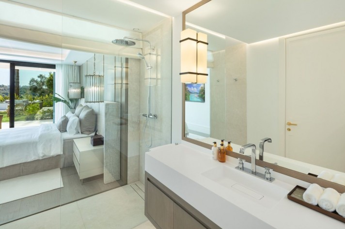 The master suite is a sensational space, offering the highest comfort and design features. All guest bedrooms afford a large size and include a bathroom en-suite and a walk-in closet. One of the guest bedrooms includes a private kitchen, offering your guests the highest comfort standards.