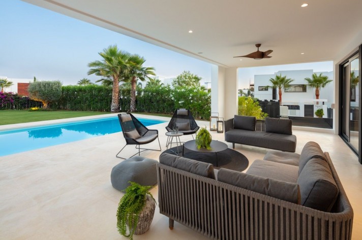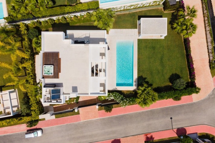 High quality contemporary villa located in a ultra-secure gated community in the sought-after area of Nueva Andalucia, within short distance to the most prestigious golf courses of Marbella. This property is set on a plot of 1,000 m2 with a manicured garden and a turquoise swimming pool.