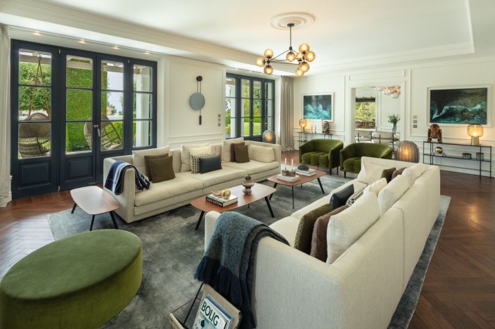 It enjoys Andalusian architecture with Mediterranean touches. The villa has been designed with attention to detail, offering the best of outdoor living: spacious covered and uncovered terraces, lush vegetation, large swimming pool and several outdoor chill-out areas. The villa welcomes you into an impressive entrance, surrounded by manicured gardens and a true sensation of tranquility and peace.