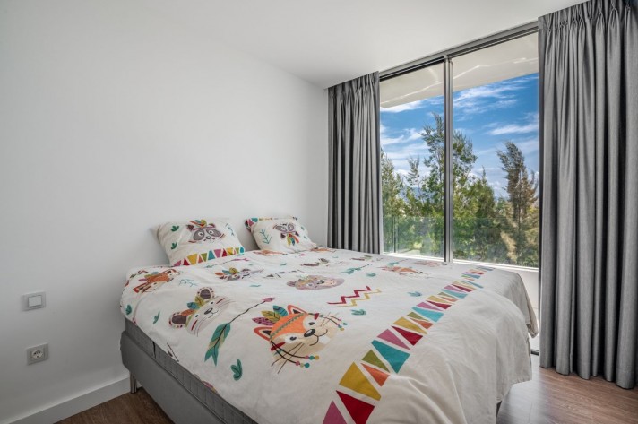 The property comprises, on the entrance level, 2 guest bedrooms sharing one bathroom, the master suite with en-suite bathroom, a spacious open plan living and dining room leading to the fully equipped modern kitchen. All have direct access to the large terrace through floor to ceiling windows providing an abundance of natural light throughout the day.