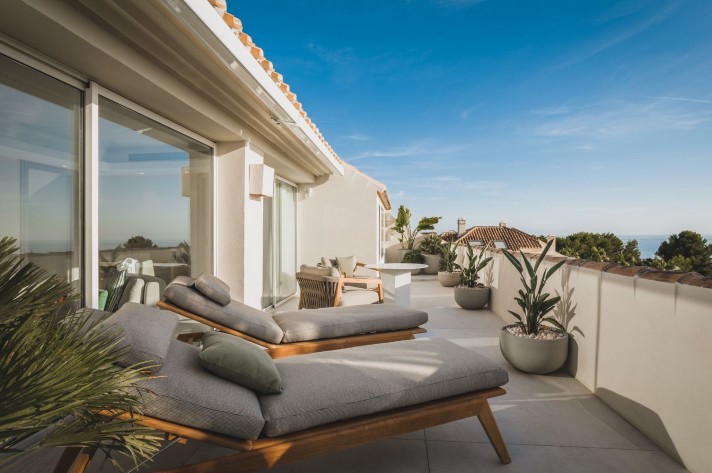 Elegant designer duplex penthouse with breathtaking sea views all along the coast, Africa, Gibraltar, and the La Concha Mountain located within El Retiro de Nagüeles, a secure gated private complex of only 16 luxury apartments in one of the most sought-after areas on Marbella’s Golden Mile.