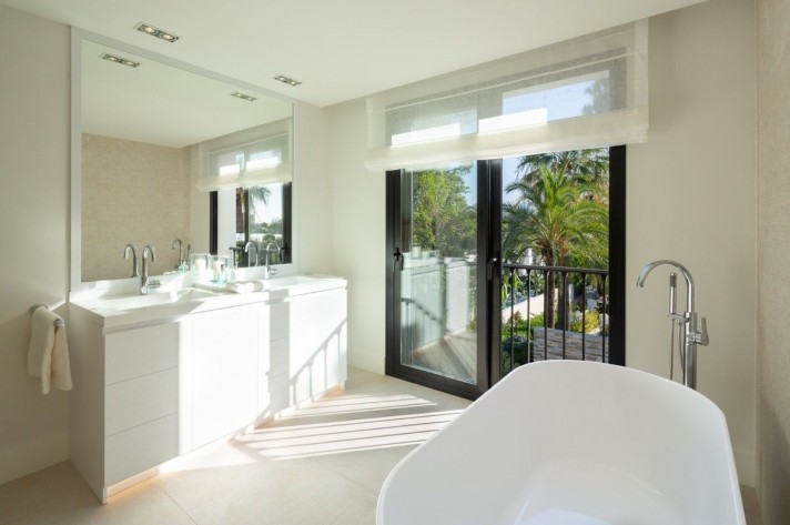 In the lower level the villa features a gym, bar and TV room making this space a perfect spot for entertainment and relaxation. The villa is located in a quiet residential area and surrounded by the most prestigious golf courses of the Costa del Sol.