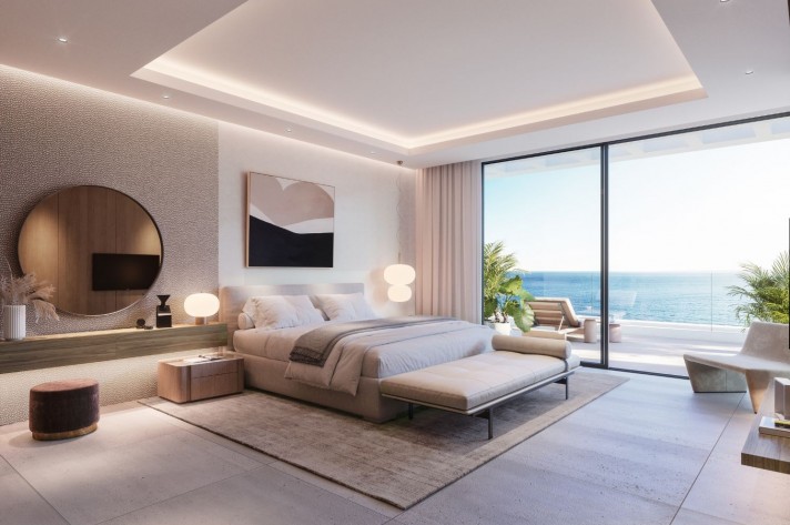 The upper floor opens the view to Gibraltar, Africa and the Mediterranean Sea. From here, Puerto Banús and the coast of Marbella are also visible. In this floor we find the master bedroom, with its magnificent open-design bathroom and the dressing room. A second bedroom with en-suite bathrooms also offers the same view.