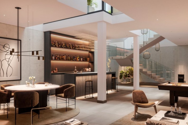 The basement floor includes a bar area, gym, sauna, a bedroom with en-suit bathroom, washing room, and an ample garage able to house four cars at once.
