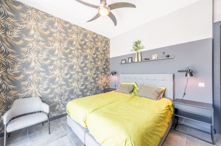 The large swimming pool tiles are special pool tiles from Spanish company (Serena mix), this tiles give not only the pool but also the whole garden a very exclusive look, the looks you expect of a villa in this price category. The swimming pool has also a shower area.