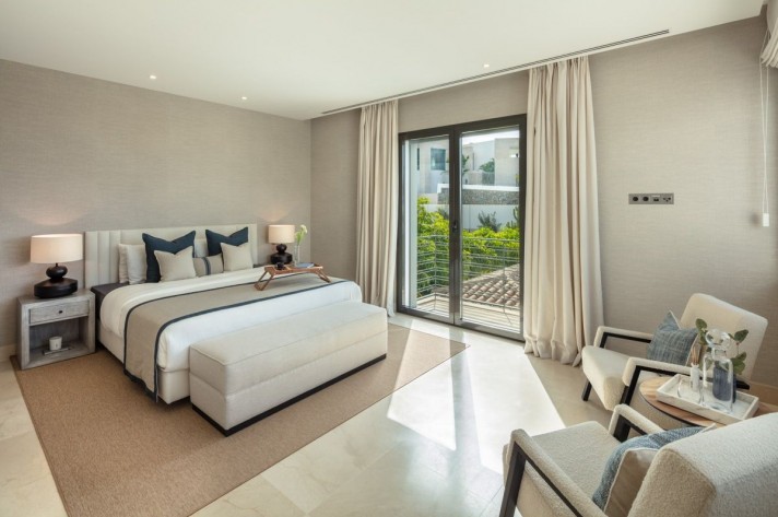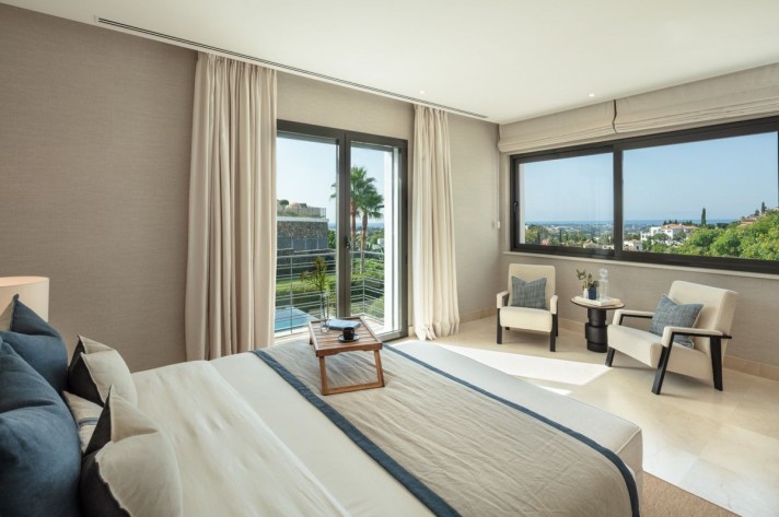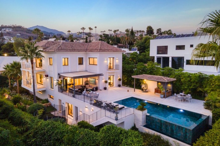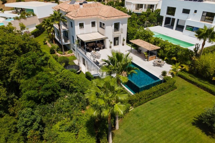 Spectacular villa nestled in the heart of El Herrojo’s, this contemporary 6 bedroom villa is surrounded by numerous golf courses, with panoramic views to Marbella’s coastline and within the immediate vicinity of Nueva Andalucía and Puerto Banús.