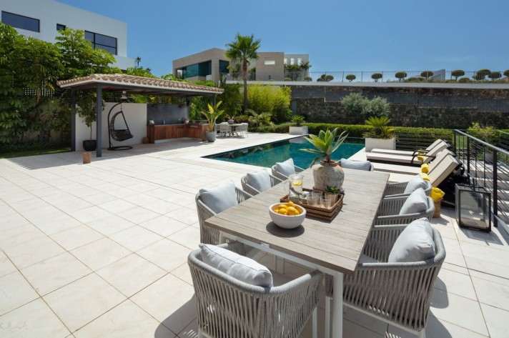 Exquisitely designed in a modern style, this 3 level estate is a paradise for family and friends and open to the light and the views only Southern Spain can offer.
