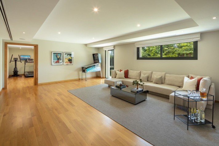 This quality modern home features 6 bedrooms, plus an extra space which has currently been converted into an office. The lower floor is dedicated to entertainment and relaxation including a play room, cinema room, gym and a garage that fits up to 4 cars.