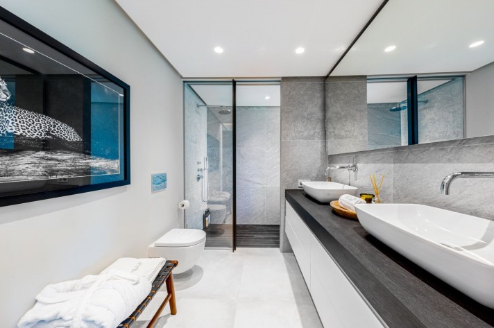 All the bedrooms have beautiful sea views, floor to ceiling windows, direct access to the garden and an en-suite bathroom. The 1st floor consists of a breathtaking master suite, with a big walk-in closet, private terrace with amazing views and a lavish master bathroom.