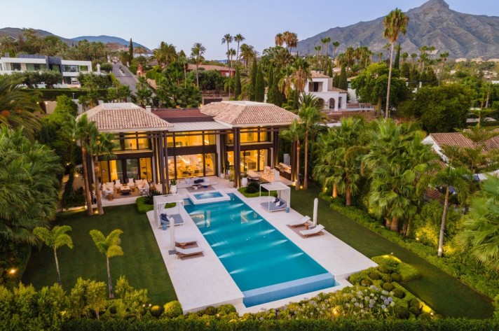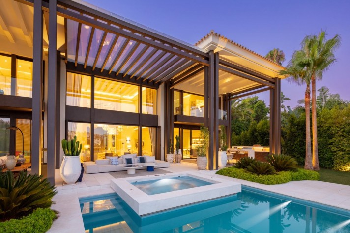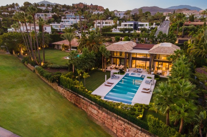 A cutting-edge estate in one of Marbella’s most exclusive residential communities, La Cerquilla. This frontline golf mansion in the heart of the Golf Valley, is set on a private plot with picturesque views to the greens of Los Naranjos Golf Course. This villa is a luxurious home boasting a stunning open-plan layout, optimised for comfort and offering the latest design trends.
