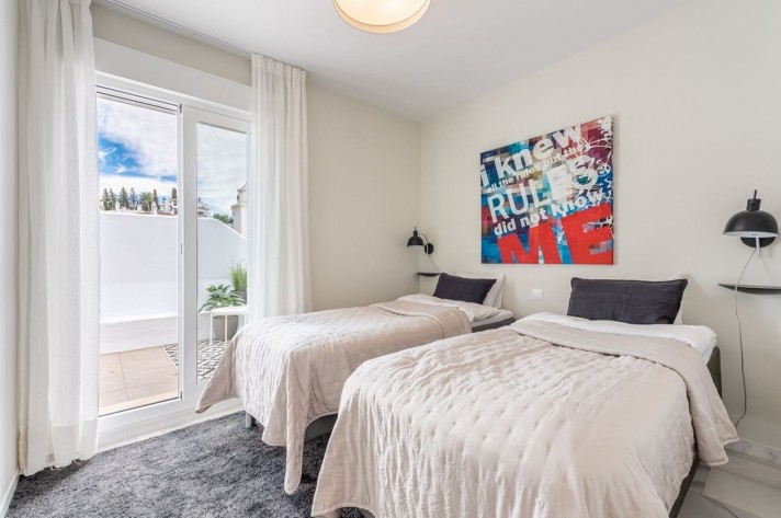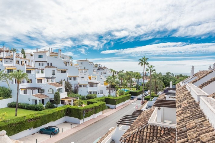 In the best location in Nueva Andalucia with walking distance to everything is this modern penthouse with two spacious terraces. The penthouse is optimally planned with an open plan kitchen / living room with a spacious terrace with a pleasant view towards beautiful Aldea Blanca. On this floor you also have a guest toilet. Upstairs you will find t… Read more…