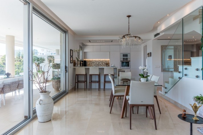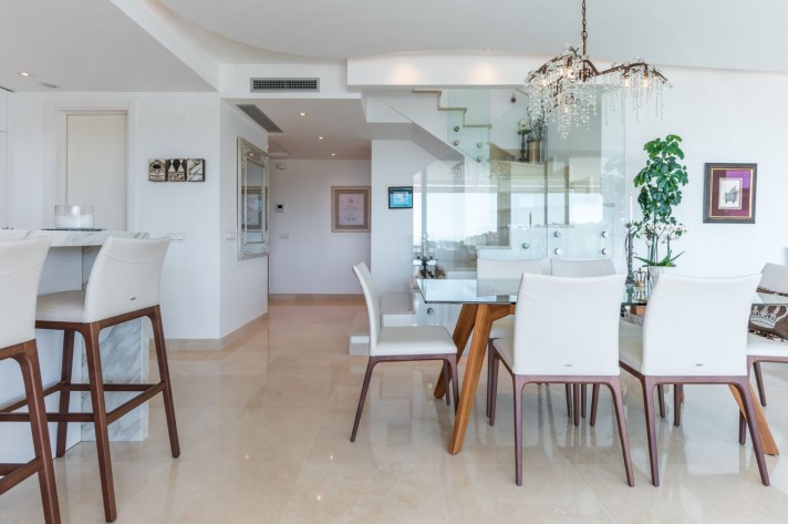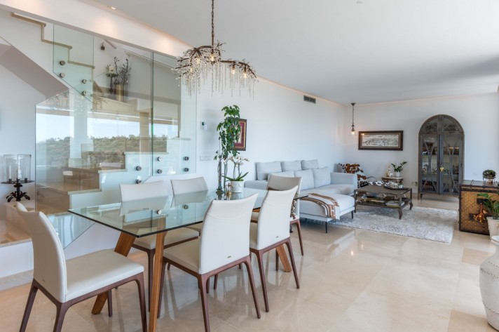 A magnificent spacious penthouse with a wow factor! Located in an enclave of La Reserva Alcuzcuz – a very demanded address and location on the Costa del Sol due to its proximity to San Pedro de Alcantara, Puerto Banus, Marbella, and Estepona City. It is just minutes away from famous La Zagaleta and surrounded by numerous up market golf resorts like La Quinta Golf and Los Naranjos to name a few. Here you find tranquility, whilst being just a few minutes to the town life of San Pedro and its beach promenade. There are numerous amenities like restaurants, bars, shops and other commercial units within a 2 minutes drive from Reserva Alcuzcuz.