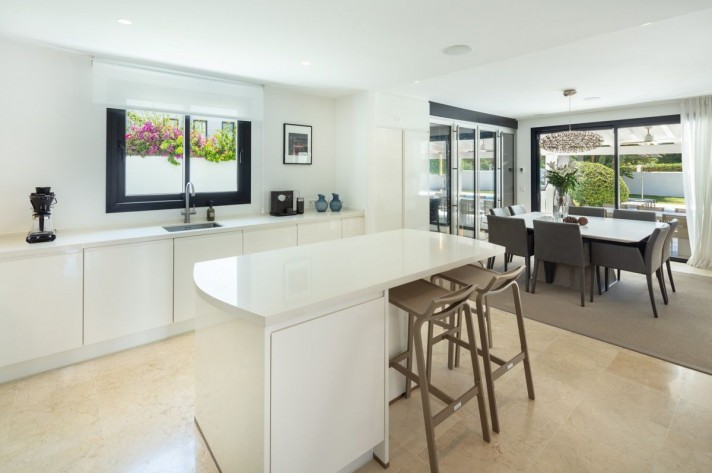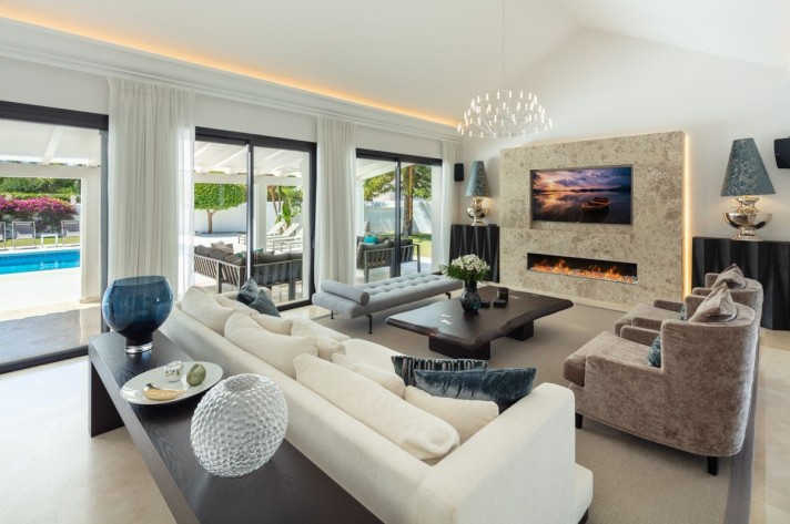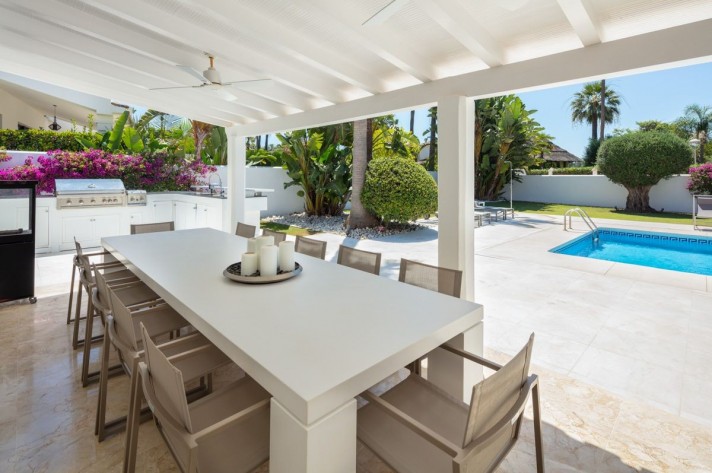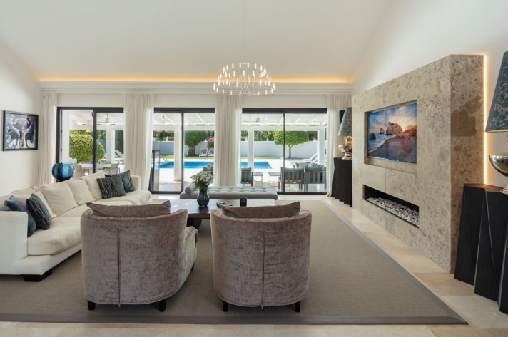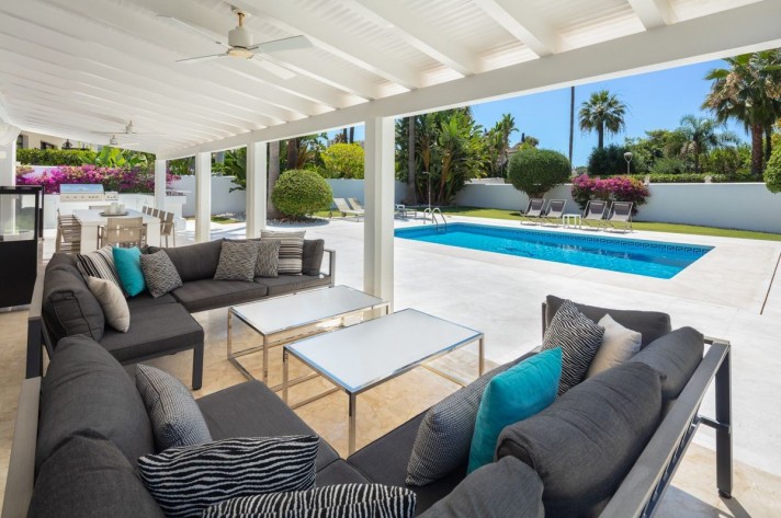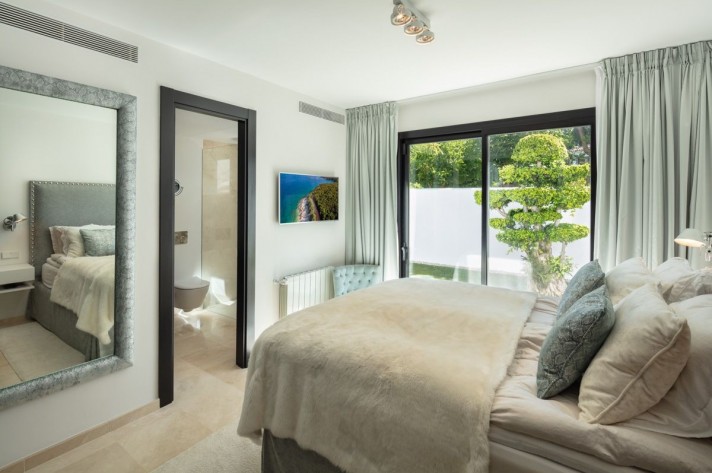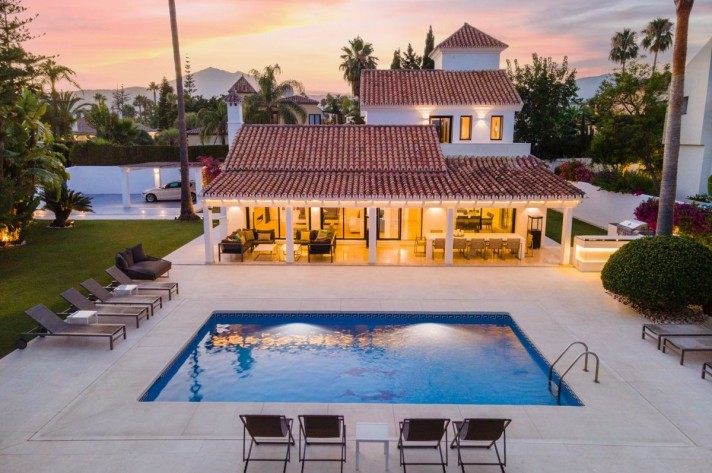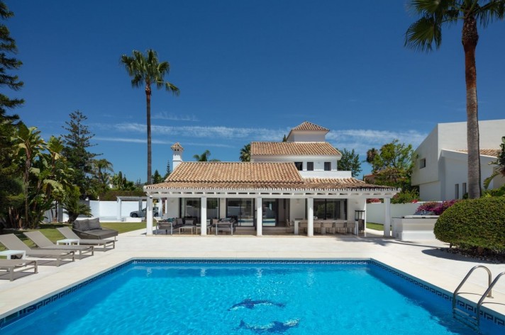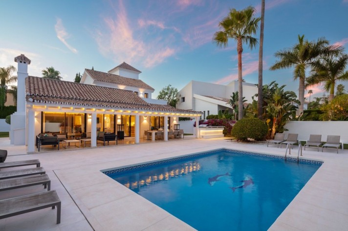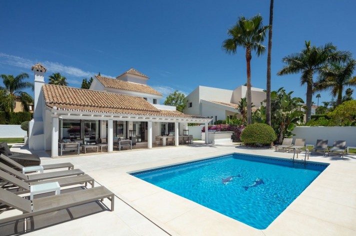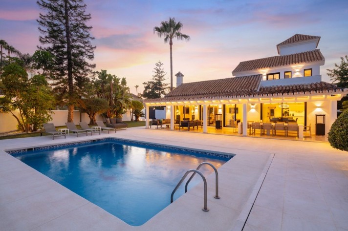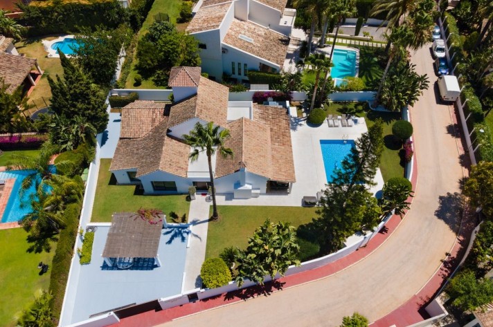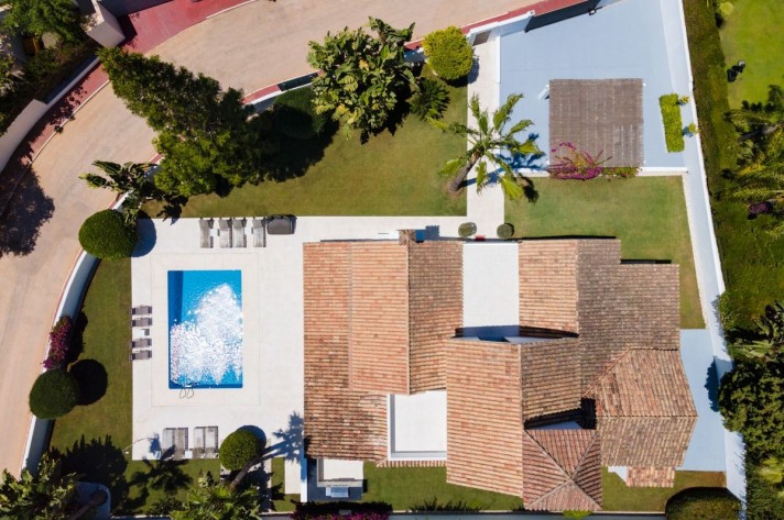 This property is a fantastic investment opportunity in the heart of the Golf Valley of Marbella. Located in the exclusive gated community of Parcelas del Golf, with 24h security, It is a rare property currently on the market. Boasting a comfortable layout, with spacious living areas and expansive manicured gardens with large covered terraces. Enjoy Marbella’s beautiful weather while relaxing outdoors, with a large private glistering pool taking centre stage. This fantastic family home offers 4 generous bedrooms, most of which have direct access to the gardens. Facing the prestigious Las Brisas golf course, this stunning estate has been built with high quality materials, offering a modern property in a prime location.
