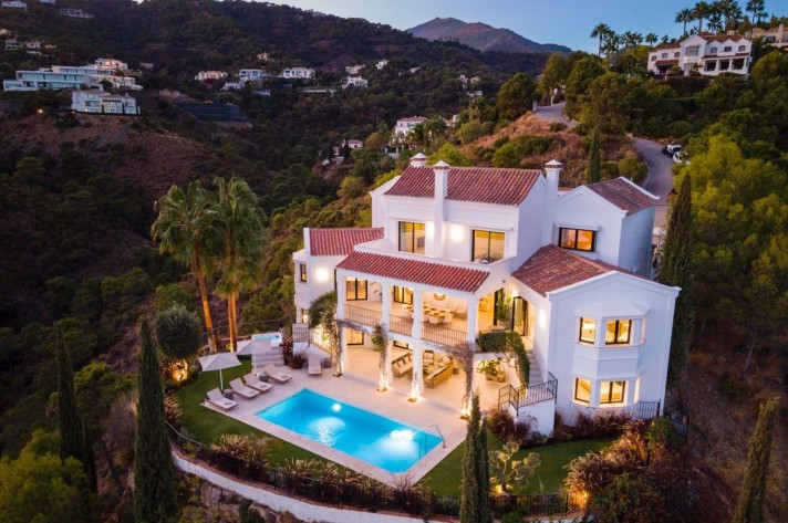An elegant Andalusian mansion infused with contemporary interiors, sitting proudly on the hillside of El Madroñal. Boasting of a privileged elevated position, El Mirador 1 offers stunning panoramic amazing sea and mountain views.