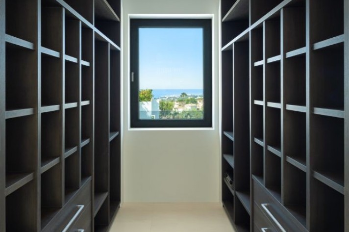 There is also a nice-sized staff or guest bedroom with an en-suite bathroom, as well as a laundry room, guest WC, and technical room. The entry level consists of an entrance hall, a guest restroom, a suite with one bedroom, a big living room with a dining area and an open kitchen, and a terrace with access to the private pool. The first-floor master bedroom has a sizable en-suite bathroom as well as a dressing area. The first level also has a separate bedroom suite. The 98 m2 top terrace is perfect for outdoor gatherings and offers panoramic views of the sea and mountains. It has a place to relax, a restroom, and storage.