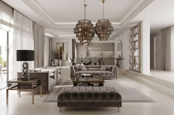 Spaciousness and style make life in this villa even more inspiring. It is an example of how high quality matches with a unique style and refined taste. They have paid special attention to every detail and the selection of materials and it’s quality. Many internal elements make this contemporary home shine like a jewel. Large windows and sliding doors to the terrace areas allow generous light to flood the property.