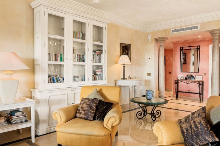 This splendid and well-maintained apartment has marble cream floor including the terraces, fitted wardrobes, air conditioning hot and cold, underfloor heating all over the apartment, double glazing with Iroko natural wood exterior carpentry and hydromassage bath.