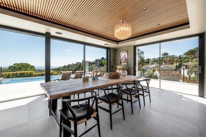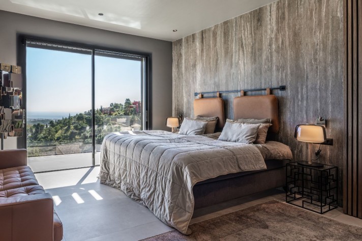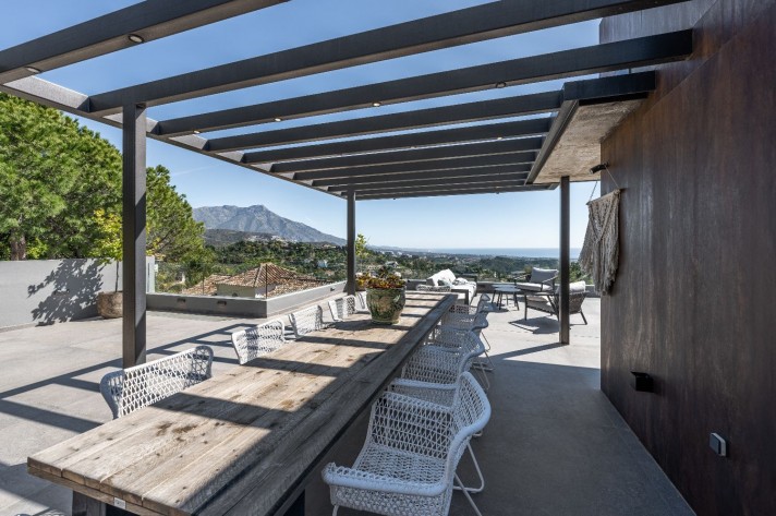 Created for the most luxurious modern life, the spectacular, contemporary-style 7-bedroom house of 493 m² is built to the highest specifications with great attention to detail and using top-quality materials and installations. Surrounded with beautiful nature of Benahavis and similar high-end properties of the prestigious area, it sits on a plot of 1.850 m² and faces south/east enjoying views to the picture-perfect surroundings, Andalusian mountains and Mediterranean Sea all the way to Africa. The villa is distributed over 3 levels, with a basement, solarium, covered and sunny terraces ideal for outdoor entertaining. It has a closed garage for 2 cars and 2 gates, upper and lower, which add convenience and have additional space for parking.
