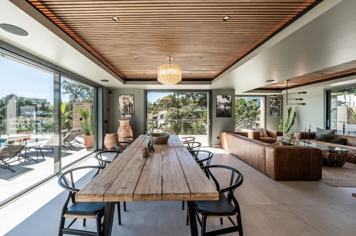 This stunning, newly built modern house is offered for sale in El Madroñal, Benahavis, one of the most privileged urbanisations on the Costa del Sol. The huge gated country estate in the foothills of the Sierra de las Nieves Natural Park is ideal for those looking for peace, privacy and safety with 24h surveillance at the same time, all the benefits of proximity to El Coto Restaurant, golf courses, the beaches and services of Marbella and legendary Puerto Banús (9km).