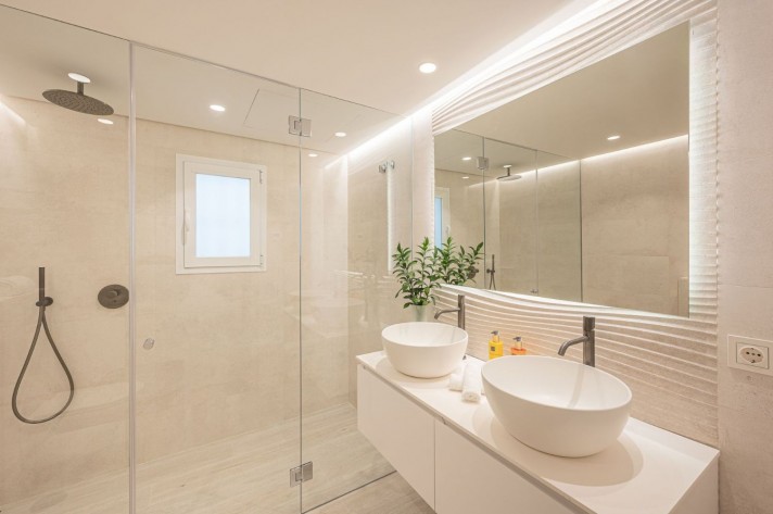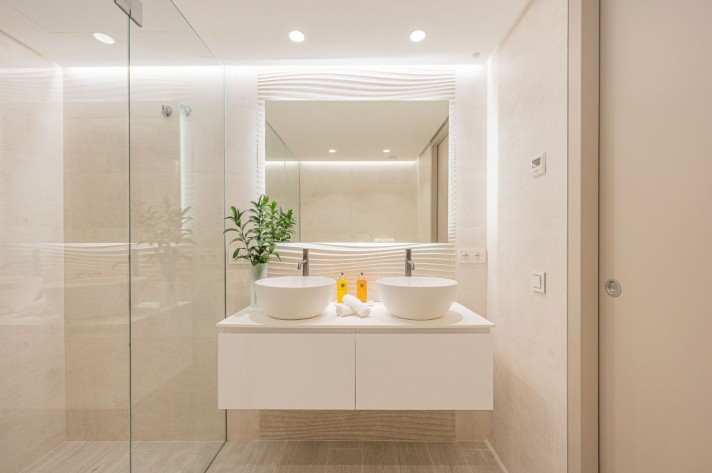 The terrace with down lighters creates the perfect entertaining area. With the iconic La Concha mountain as a backdrop, the Mediterranean only footsteps away, this is truly the idyllic setting!