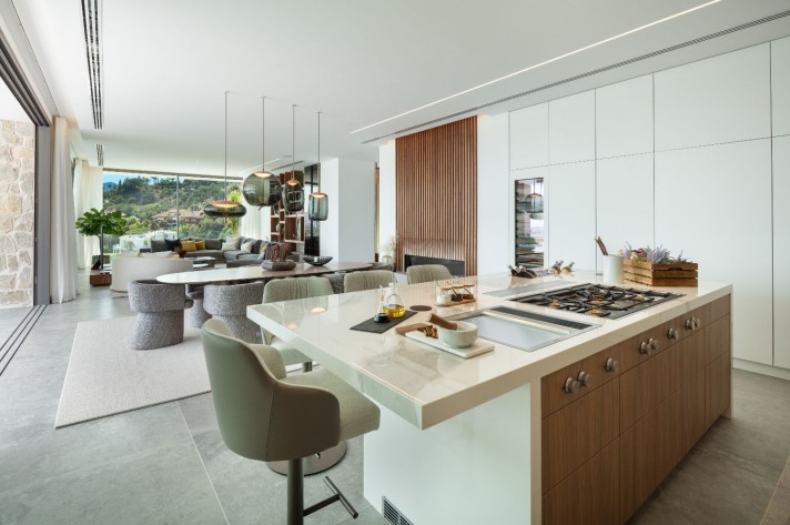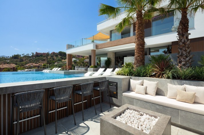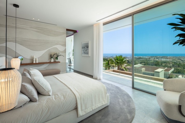 The master bedroom, in particular, is a sight to behold, as it offers sweeping views of the shimmering sea, providing a serene and picturesque retreat. A custom-designed walk-in closet adds a touch of extravagance to the master suite, leading into a luxurious bathroom where you can indulge in the epitome of luxury. This villa is more than just a property; it is a masterpiece meticulously crafted to create a lifestyle beyond compare. This extraordinary villa invites you to experience the ultimate in luxury, with its unparalleled design, breathtaking views and exquisite amenities, making it the quintessential dream home for those seeking the epitome of modern living in Marbella.