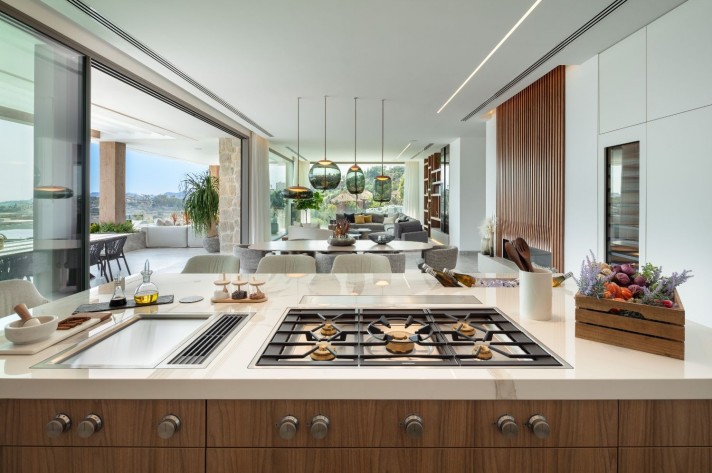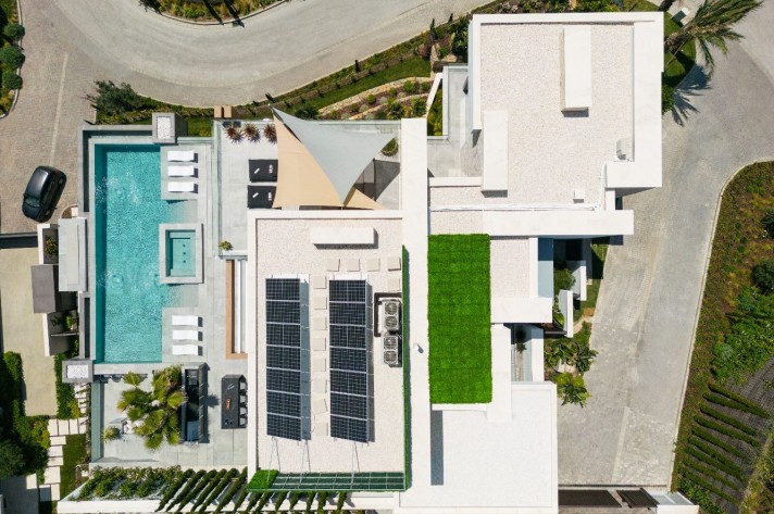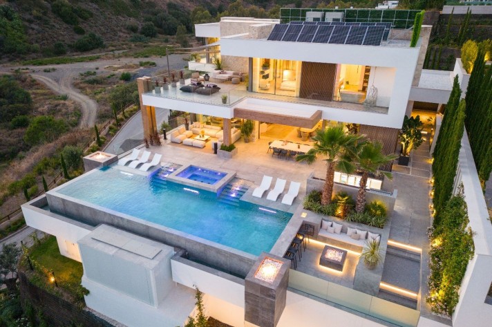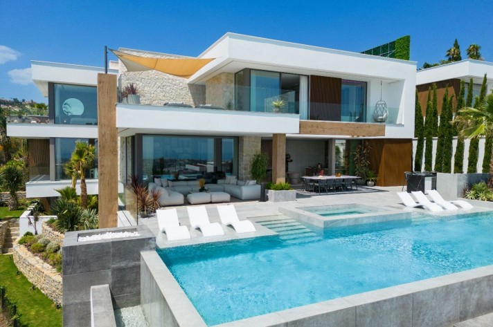 One of the most captivating features of this exceptional villa is the breathtaking panoramic views it offers, stretching from the Mediterranean Sea all the way to the picturesque African coast. From the moment you step foot onto the property, you are greeted with incredible views that stretches beyond the horizon. The contemporary design encompasses vast and open living spaces, seamlessly blending the interior with the exterior. The centrepiece is a stunning zero-edge pool that appears to merge with the surrounding landscape, creating a visual spectacle that captivates the senses. This pool area is complemented by an outdoor cinema, providing an enchanting space for entertainment under the stars.