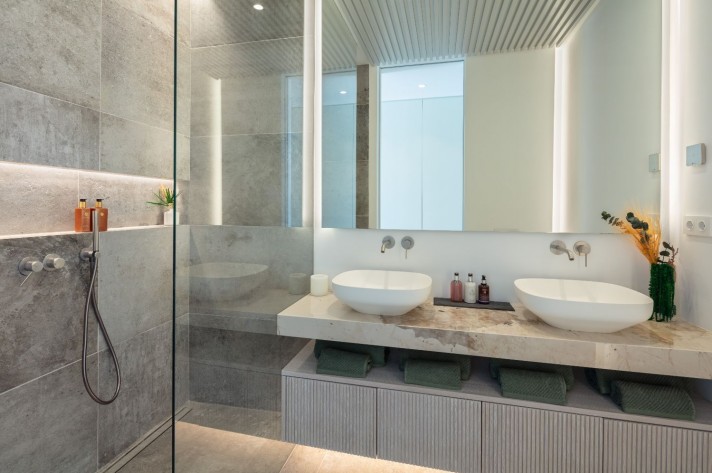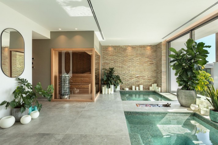 An outdoor kitchen and dining areas further enhance the experience, making it an ideal spot for hosting gatherings and enjoying the Mediterranean climate in style. A sumptuous spa invites you to unwind with its indoor pool, steam room, sauna and massage rooms, offering a private sanctuary for rejuvenation and well-being. Additionally, a fully equipped indoor gym and entertainment room cater to your fitness and leisure needs, ensuring you can stay active and entertained without leaving the comfort of your home. The villa features six exquisitely designed bedrooms, each showcasing the highest level of craftsmanship and elegance.
